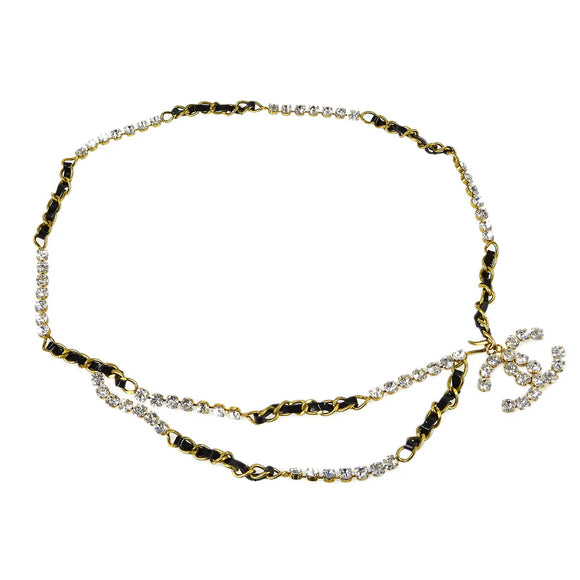 Chanel 1995 Spring Rhinestones CC Gold & Black Chain Belt