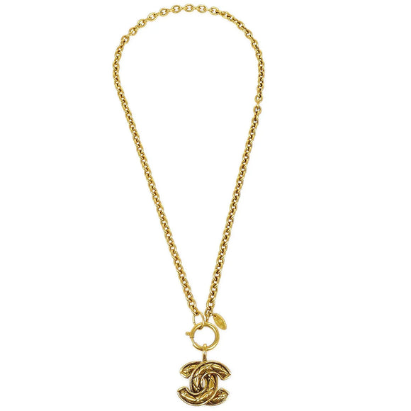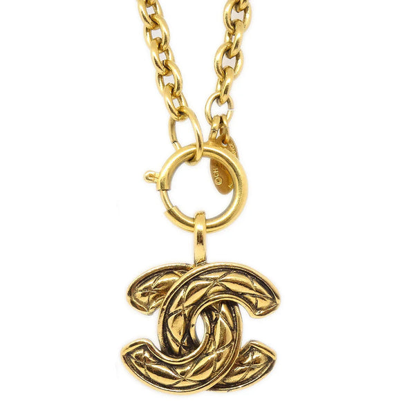 CHANEL Quilted CC Gold Chain Pendant Necklace 3857