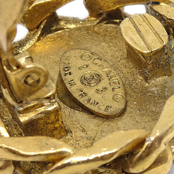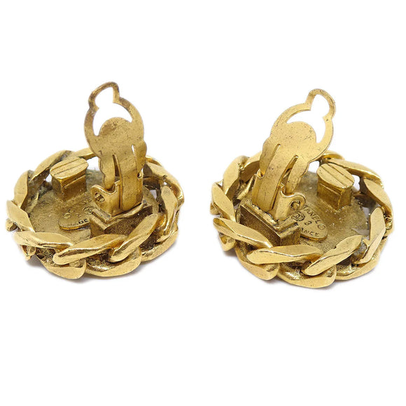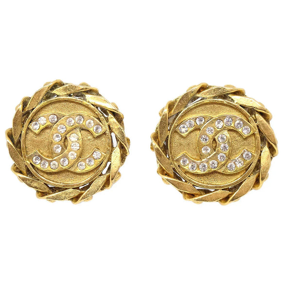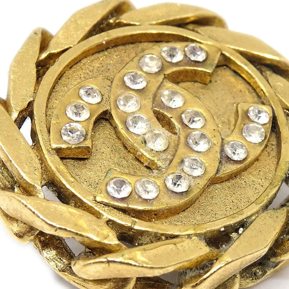 Chanel Button Rhinestone Earrings Clip-On Gold 23