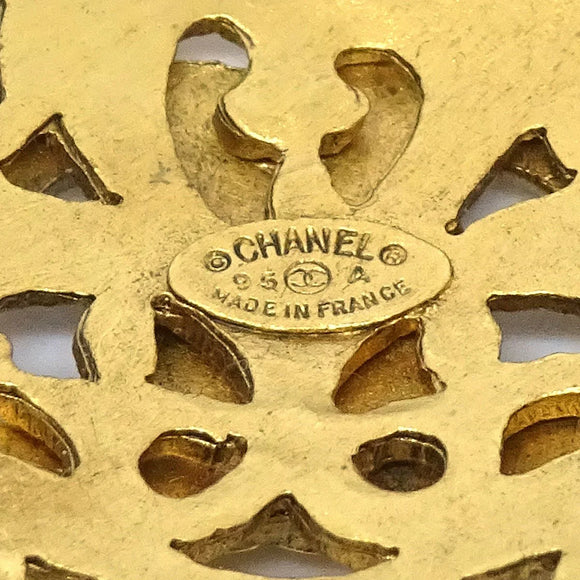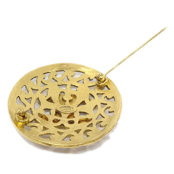 CHANEL 1995 Fretwork Paisley Brooch Gold