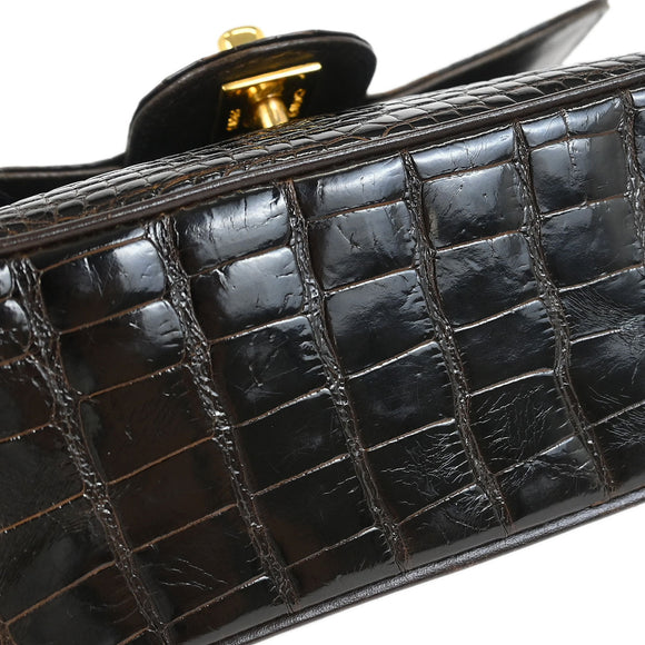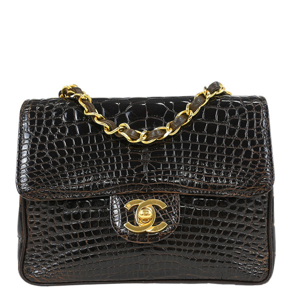 Chanel * 1989-1991 Brown Crocodile Mini Classic Square Flap Shoulder Bag