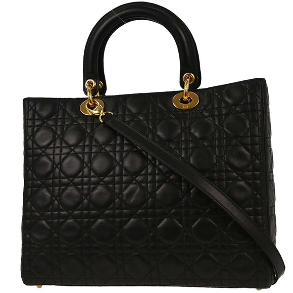 Christian Dior 1997 Black Lambskin Lady Dior Cannage 2way Shoulder Handbag