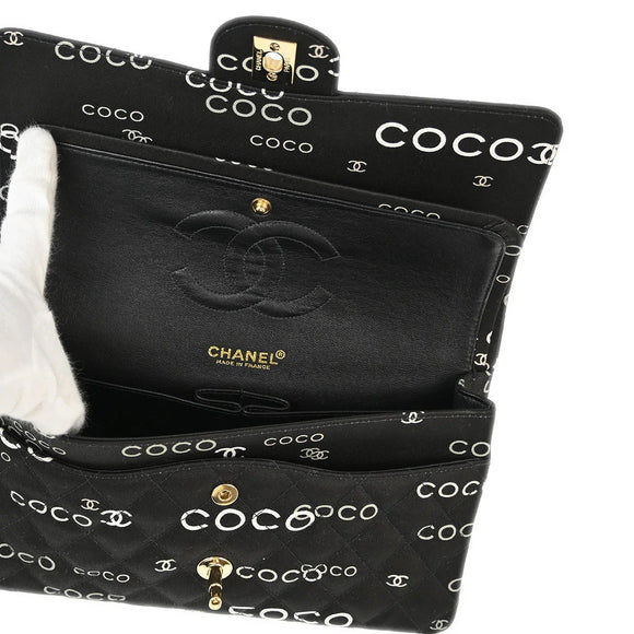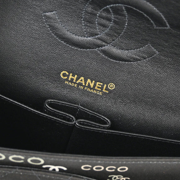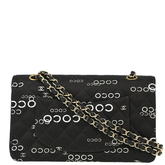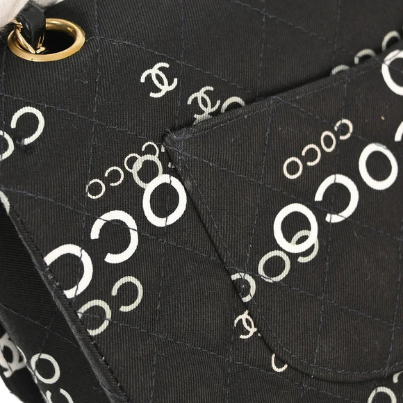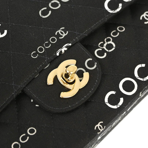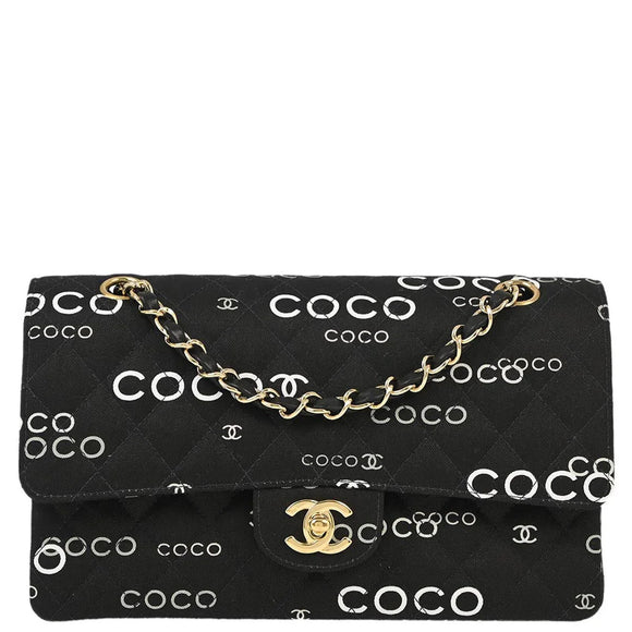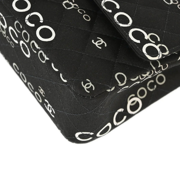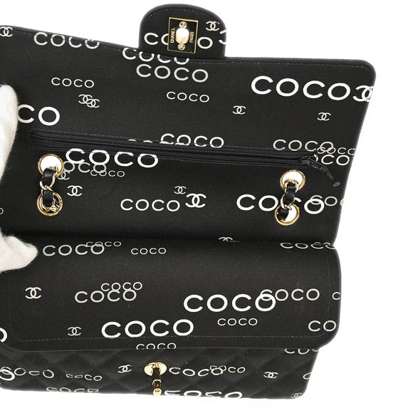 Chanel Black Canvas COCO Medium Classic Double Flap Shoulder Bag