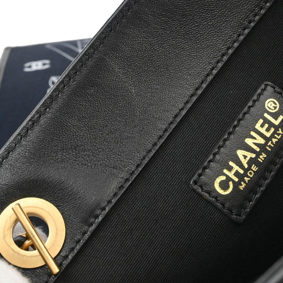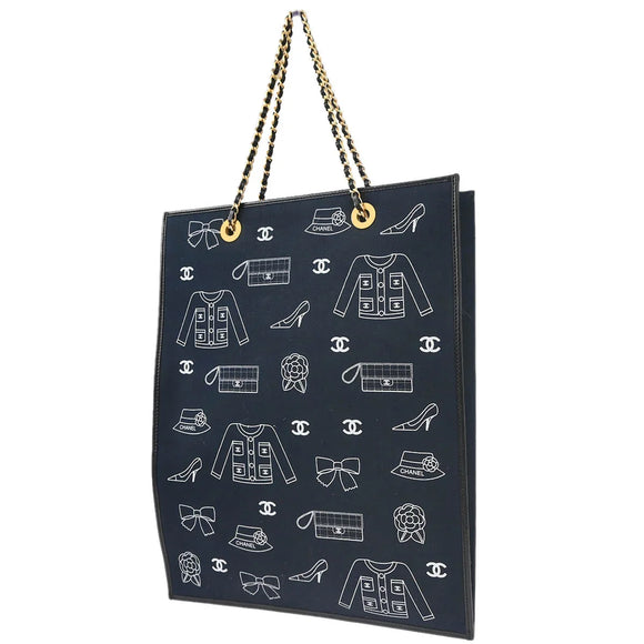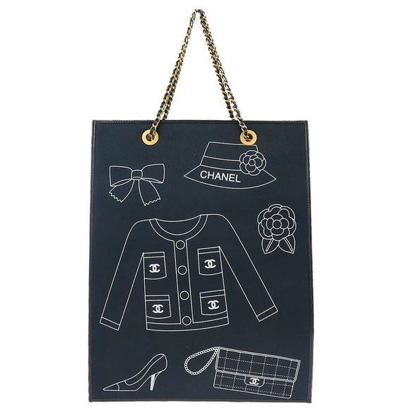 Chanel 2002-2003 Navy Canvas Icon Chain Tote Handbag