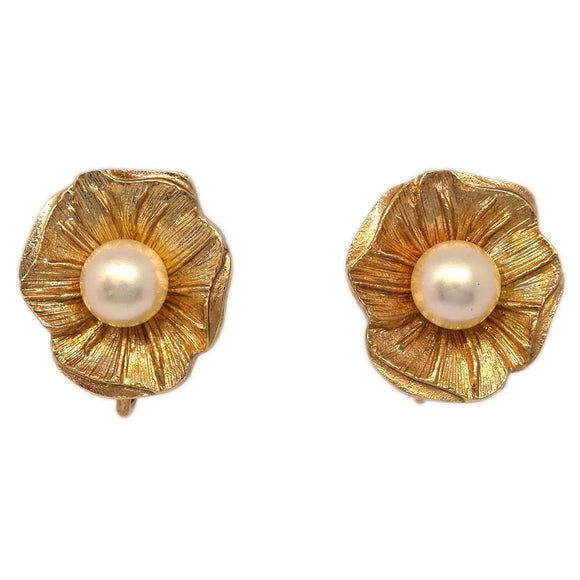 Christian Dior Flower Earrings Clip-On Costume Pearl