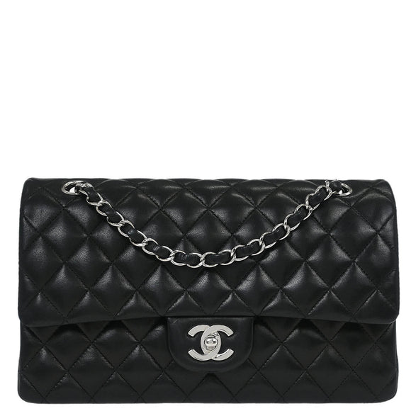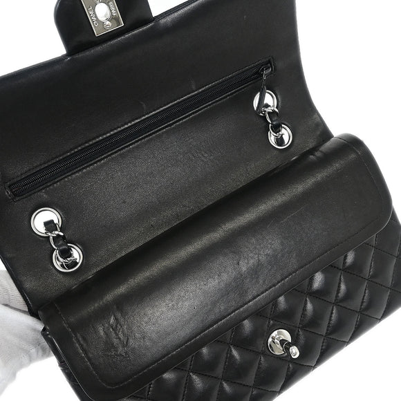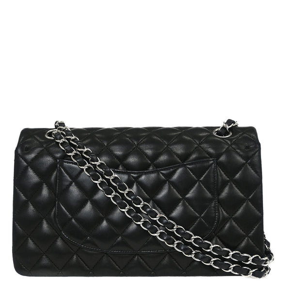 Chanel 1989-1991 Black Lambskin Medium Classic Double Flap Shoulder Bag