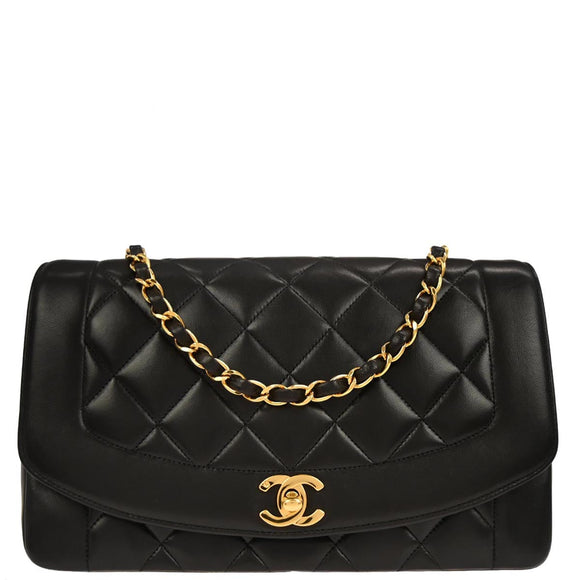 Chanel 1991-1994 Black Lambskin Medium Diana Shoulder Bag
