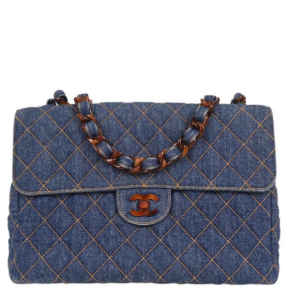 Chanel 1996-1997 Blue Denim Jumbo Classic Flap Shoulder Bag