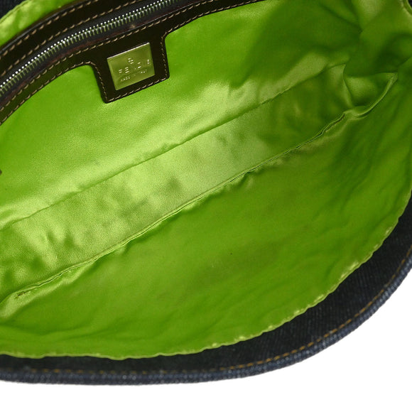 Fendi Navy Denim Floral Baguette Handbag