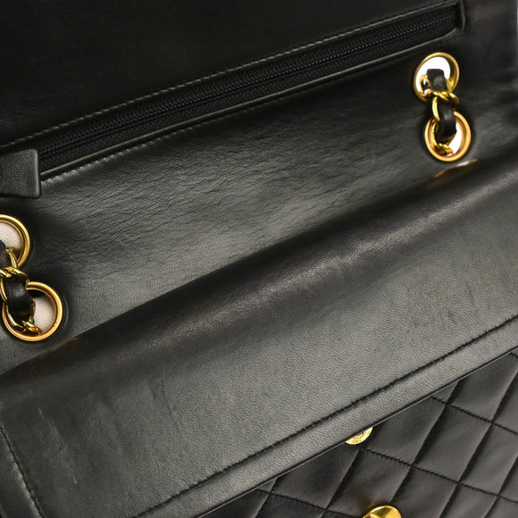 Chanel 1991-1994 Black Lambskin Small Classic Double Flap Shoulder Bag