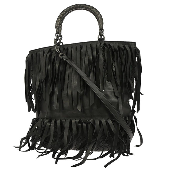 Bottega Veneta Black Intrecciato Fringe Tote Bag