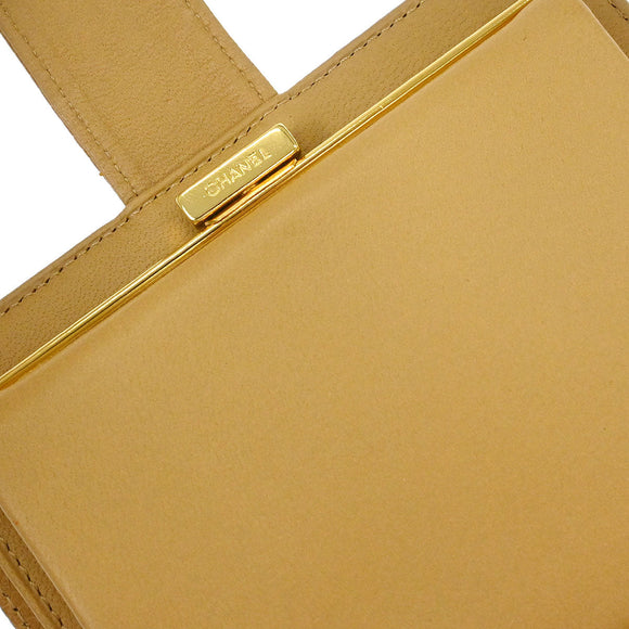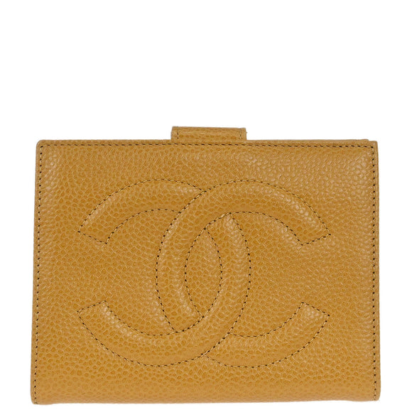 Chanel Bifold Wallet Purse Beige Caviar Skin
