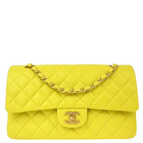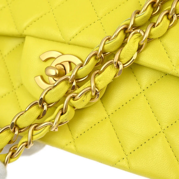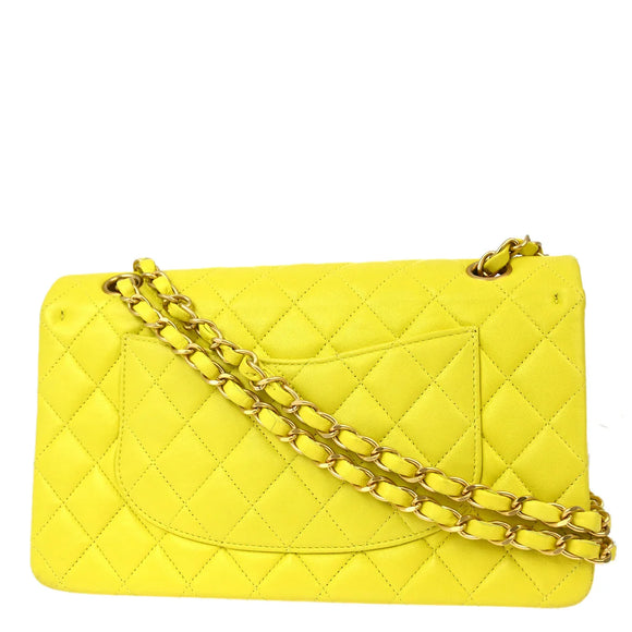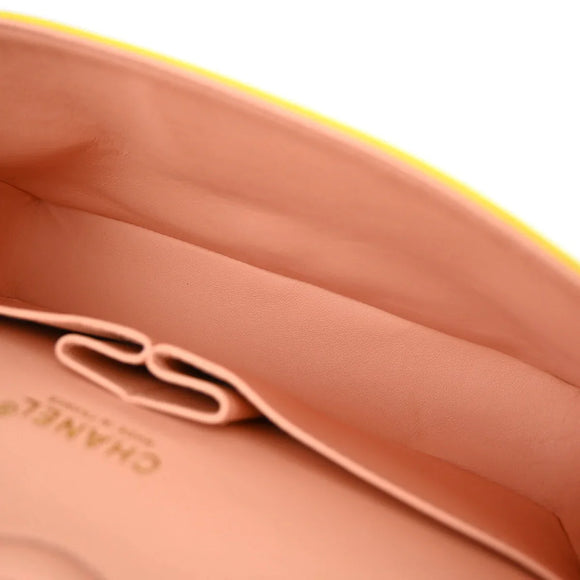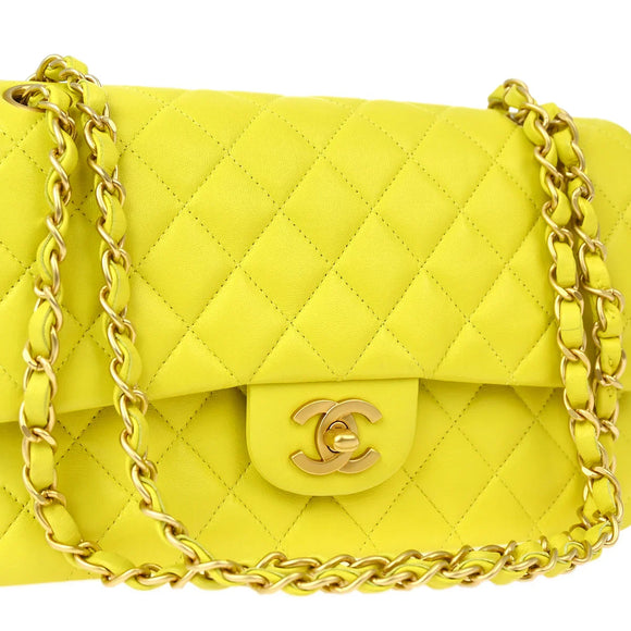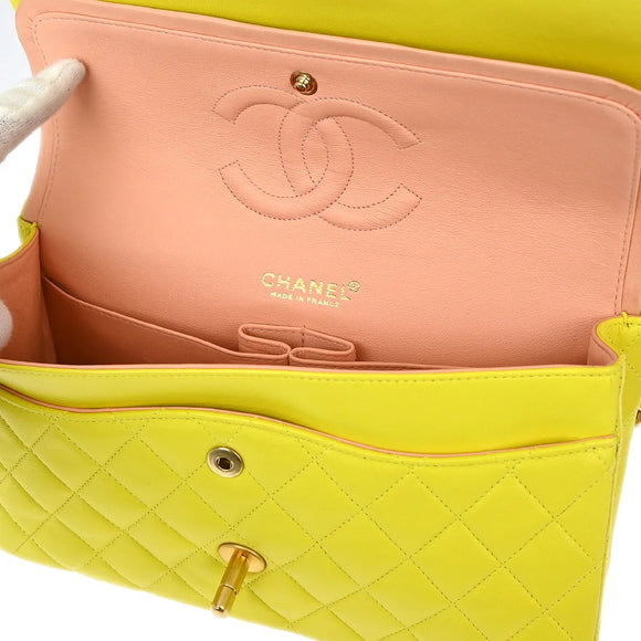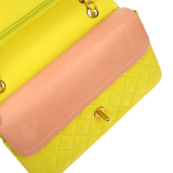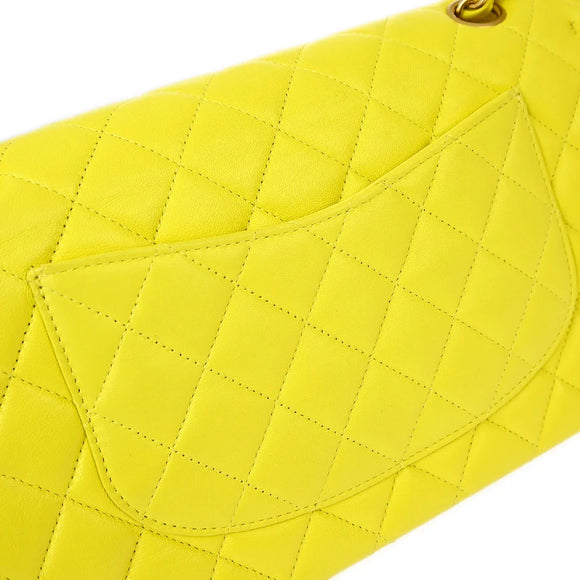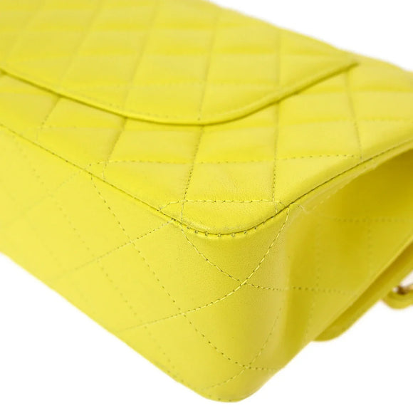 Chanel * 2000-2002 Yellow Lambskin Medium Classic Double Flap Shoulder Bag