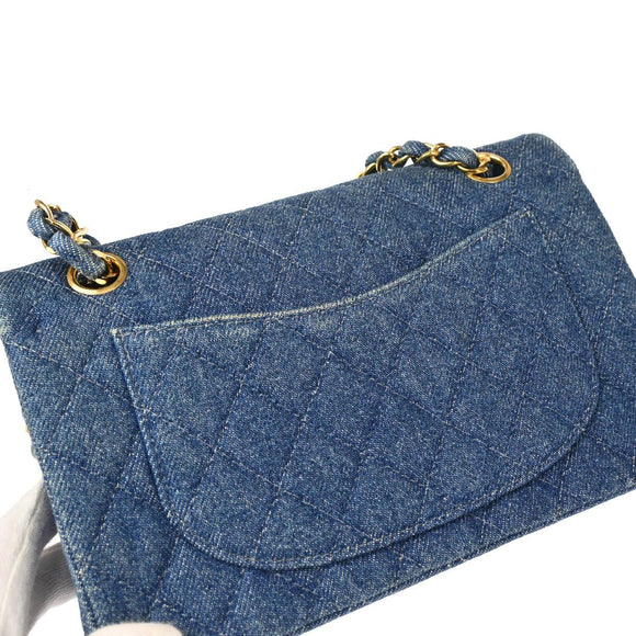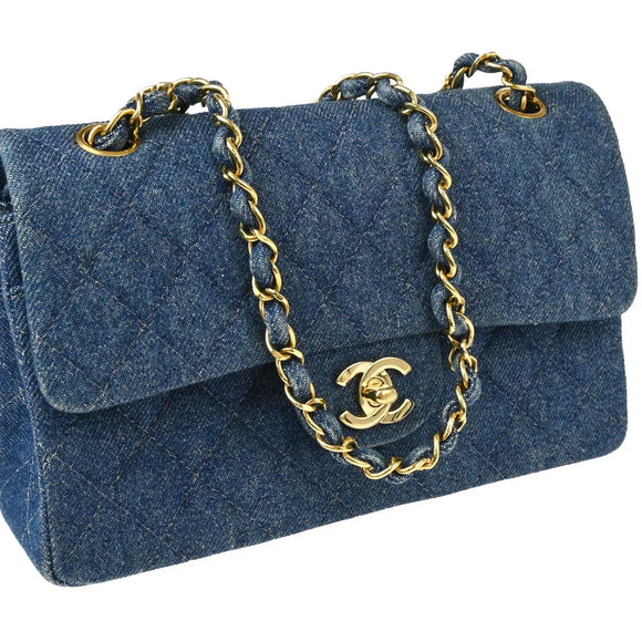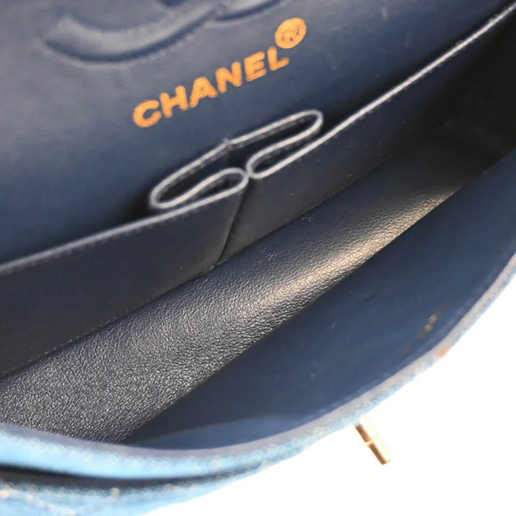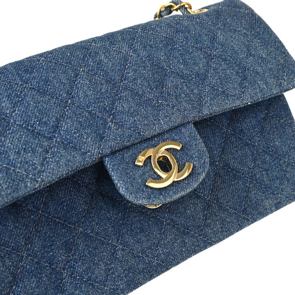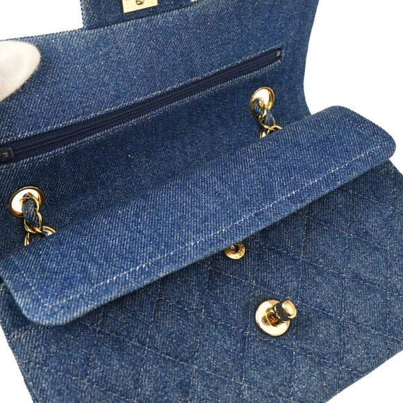 Chanel 1997-1999 Blue Denim Small Classic Double Flap Shoulder Bag