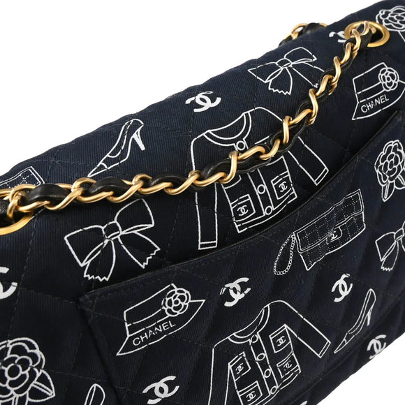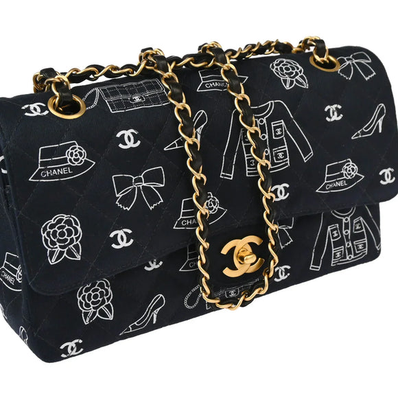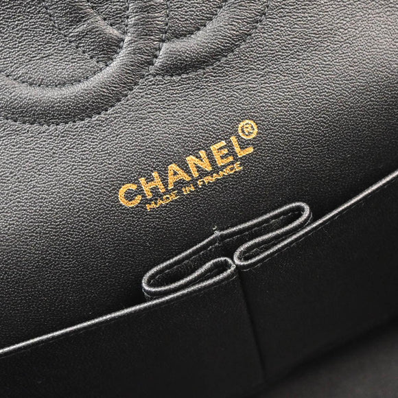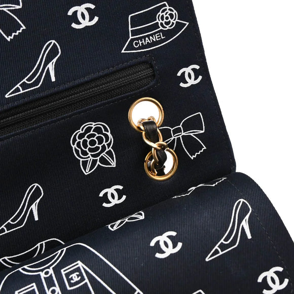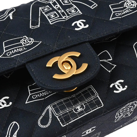 Chanel 2001-2003 Black Canvas Medium Classic Double Flap Shoulder Bag