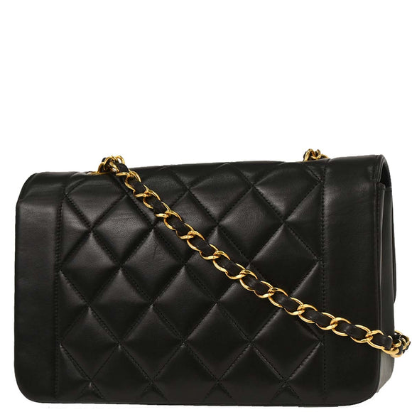 Chanel 1994-1996 Black Lambskin Small Diana Shoulder Bag