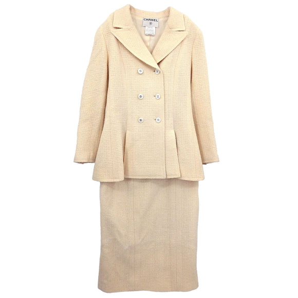 Chanel 1998 Setup Suit Jacket Skirt Tweed White #38