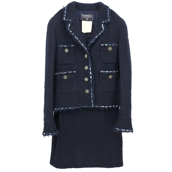 Chanel 1994 Setup Suit Jacket Skirt Dark Navy #40