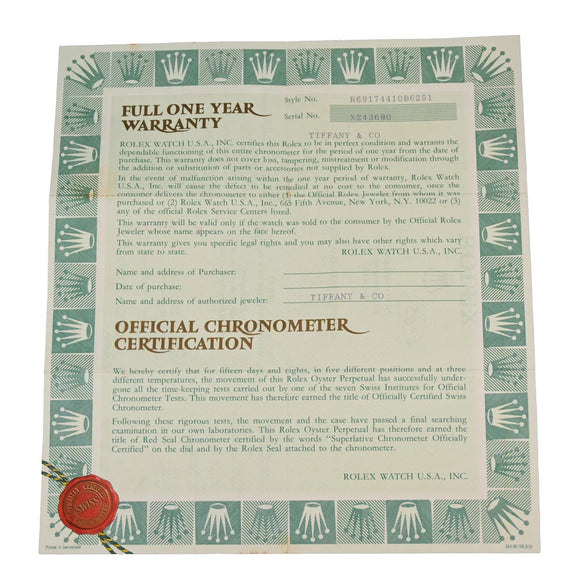 Rolex by Tiffany & Co. Ref.69174 Oyster Perpetual Datejust 26mm Watch
