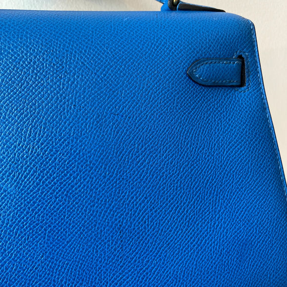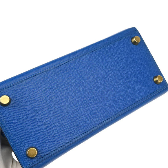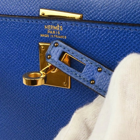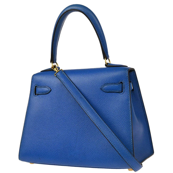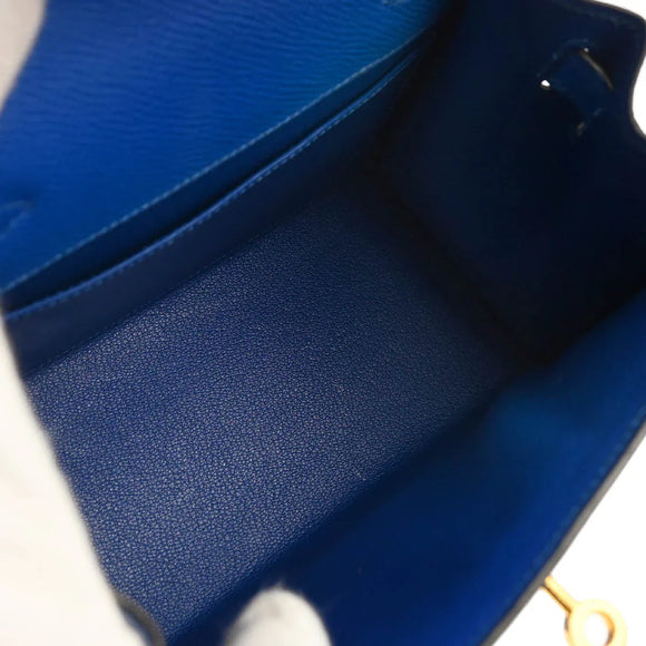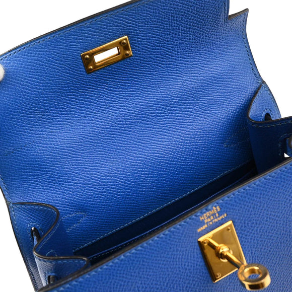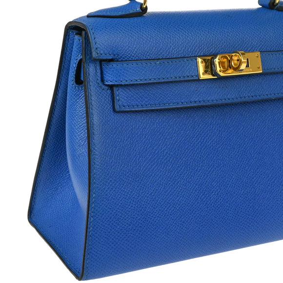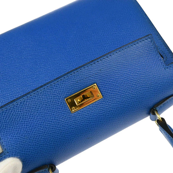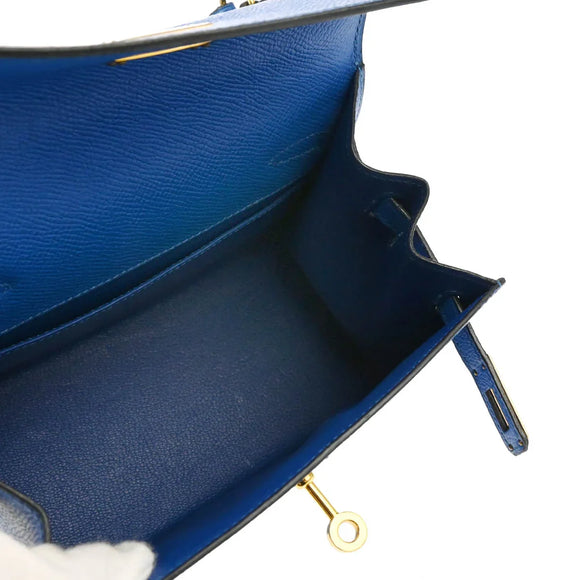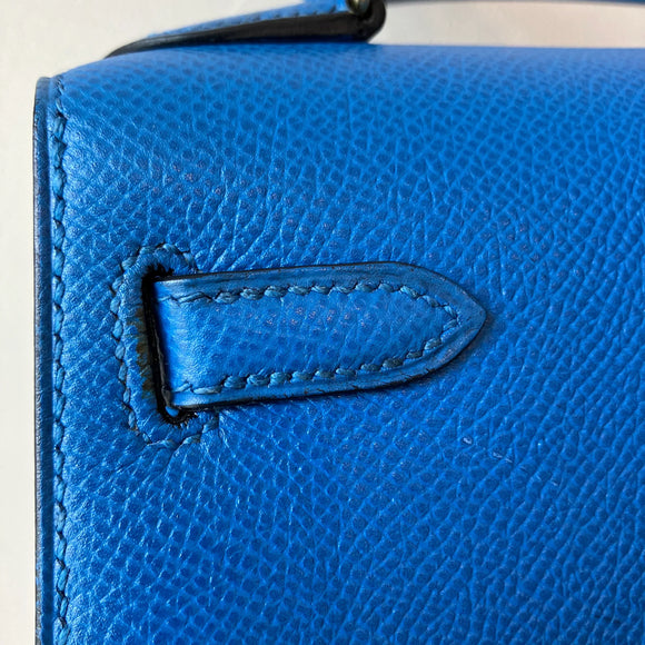 Hermes 1996 Blue Couchevel Mini Kelly 20 Sellier 2way Shoulder Handbag