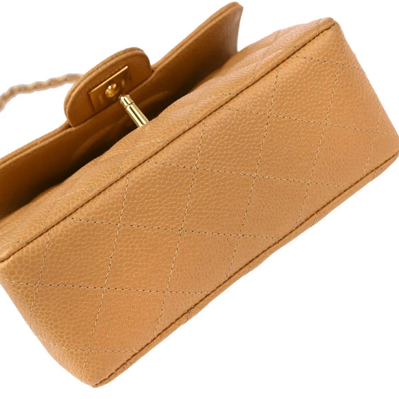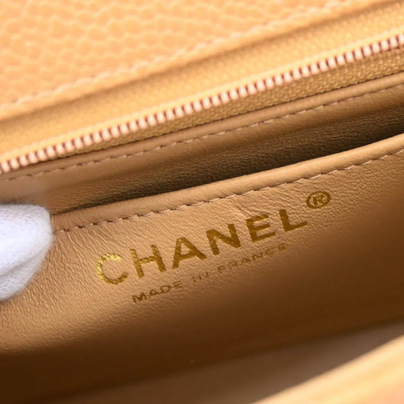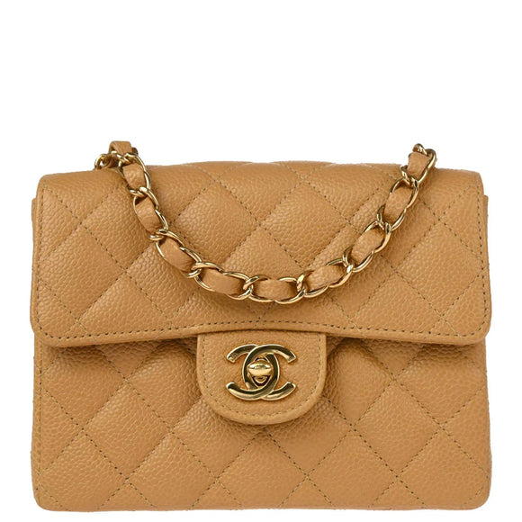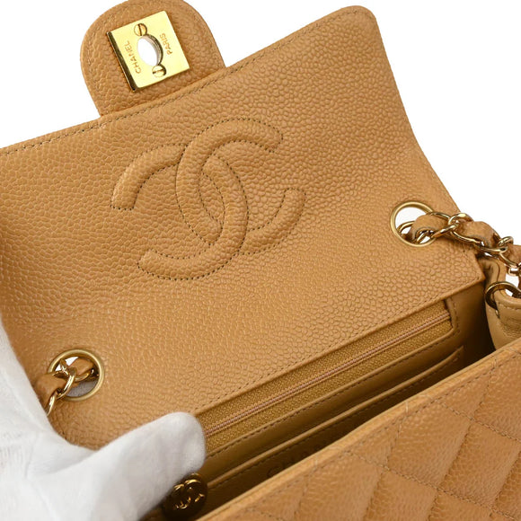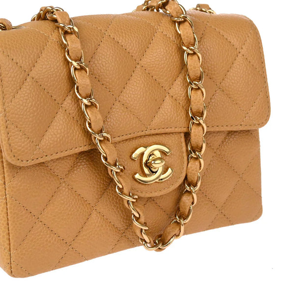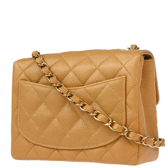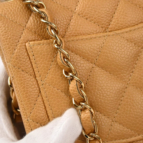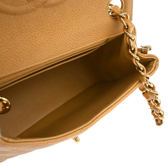 Chanel 2004-2005 Beige Caviar Mini Classic Square Flap Shoulder Bag 17