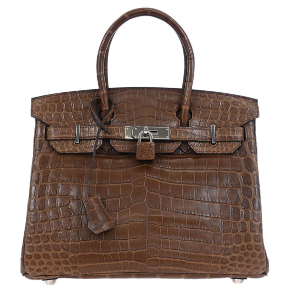 Hermes * Cacao Matte niloticus Crocodile Birkin 30 Handbag