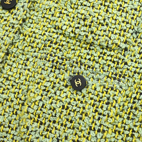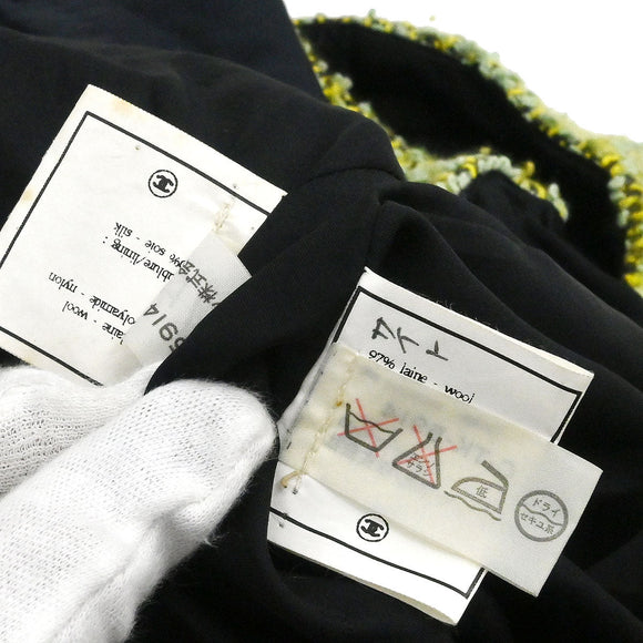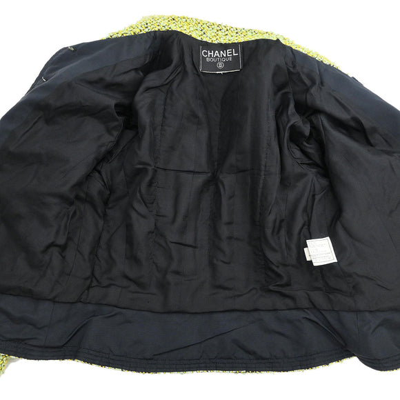 Chanel Tweed Setup Suit Jacket Skirt Green