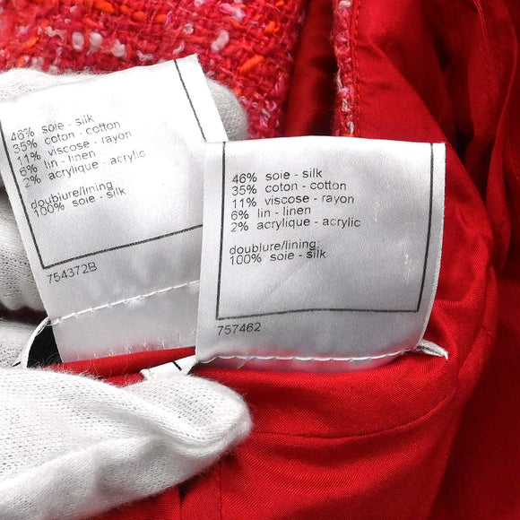 Chanel 2006 Setup Suit Jacket Skirt Tweed Red #42 #40