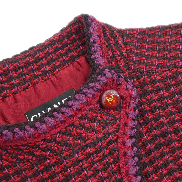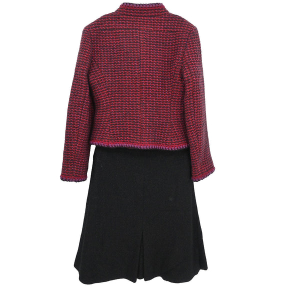 Chanel 2001 Setup Suit Jacket Skirt Tweed Red Black #36 #34