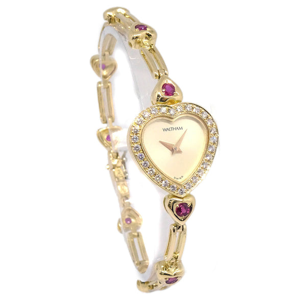 Waltham Ref.411.10 Heart Quartz Watch 18KYG Ruby Diamond