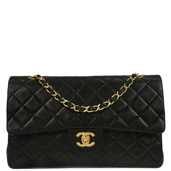 Chanel 1989-1991 Black Lambskin Medium Classic Double Flap Shoulder Bag