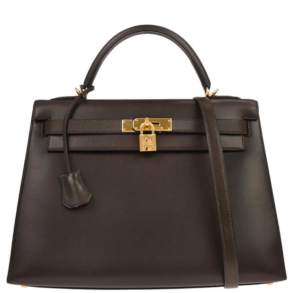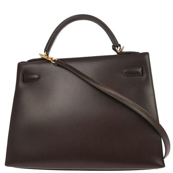 Hermes Ebene Box Calf Kelly 32 Sellier 2way Shoulder Handbag