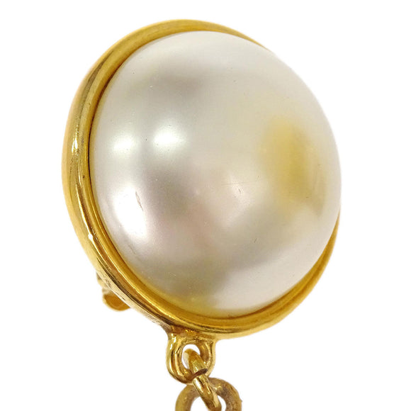 Chanel Hoop CC Dangle Clip-On Earrings Costume Pearl Gold 28