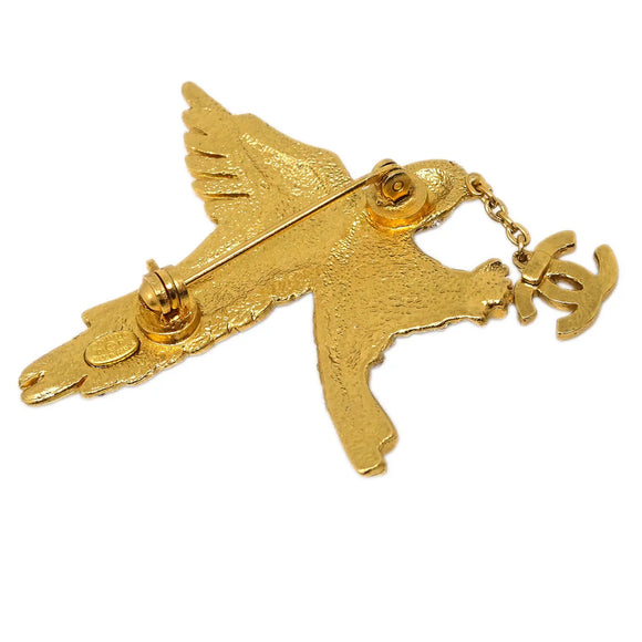Chanel Eagle Rhinestone Brooch Pin Corsage Gold 01P