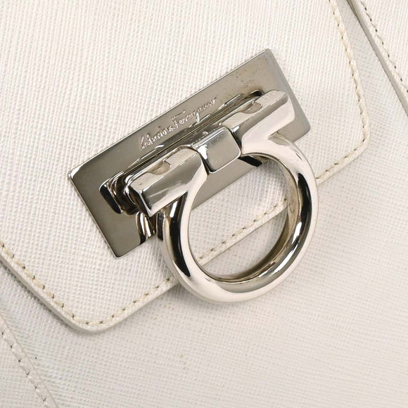 Salvatore Ferragamo White Rattan Gancini Handbag