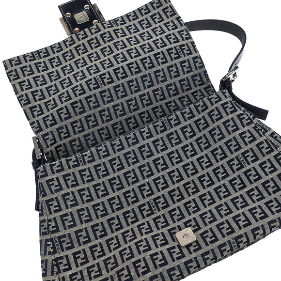 Fendi Navy Gray Canvas Zucchino Mamma Baguette Handbag
