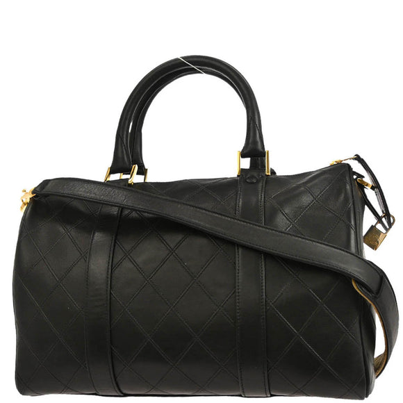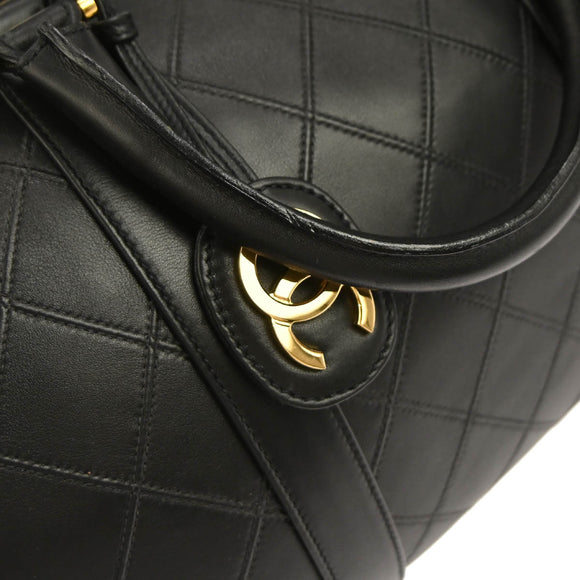 Chanel 1994-1996 Black Lambskin Bicolore 2way Duffle Shoulder Handbag