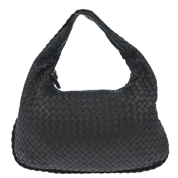 Bottega Veneta Black Lambskin Intrecciato Hobo Handbag