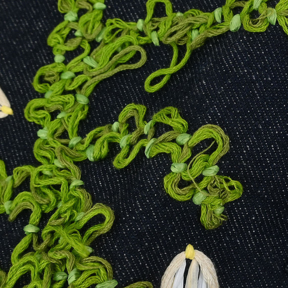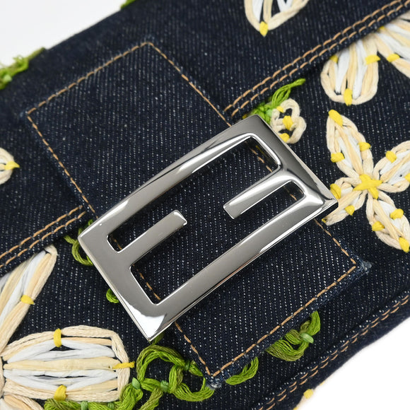 Fendi Navy Denim Flower Embroidered Baguette Handbag