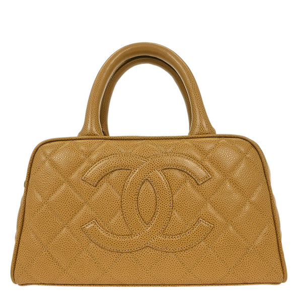 Chanel 2003-2004 Beige Caviar Bowling Bag 27