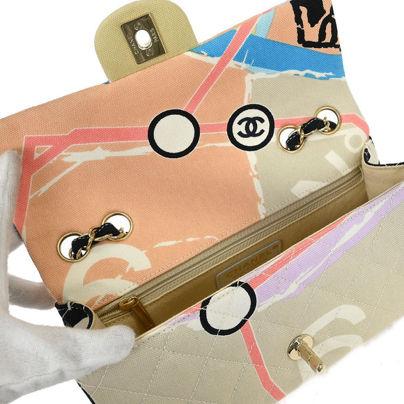 Chanel 2005-2006 Pink Canvas Paris Map Single Flap Shoulder Bag