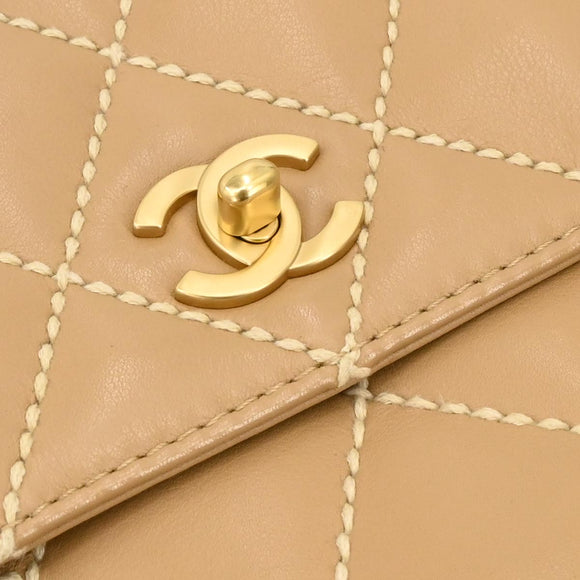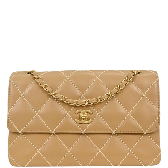 Chanel 2003-2004 Beige Calfskin Wild Stitch Shoulder Bag