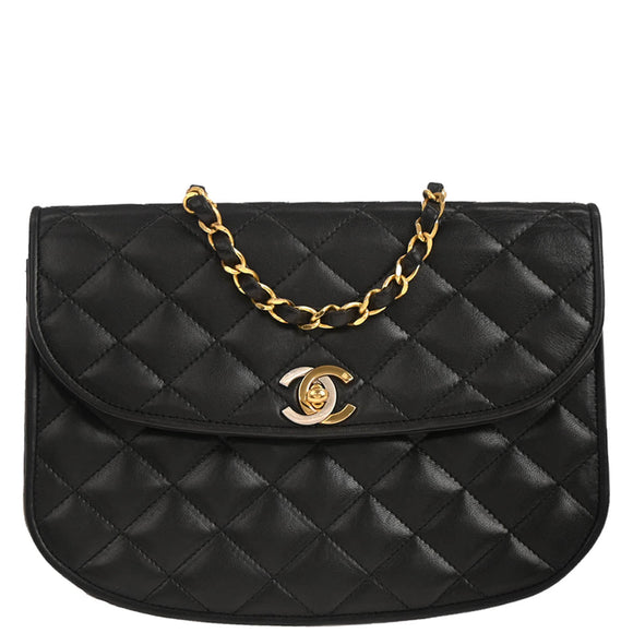 Chanel 1994-1996 Black Lambskin Paris Shoulder Bag