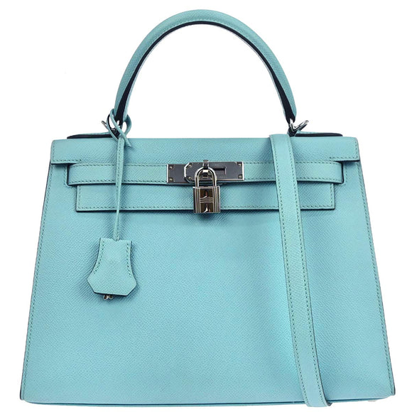 Hermes Blue Atoll Epsom Kelly 28 Sellier 2way Shoulder Handbag