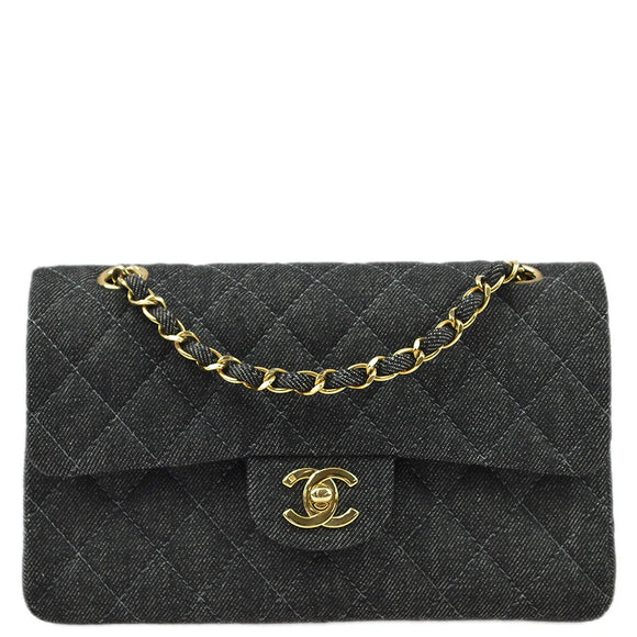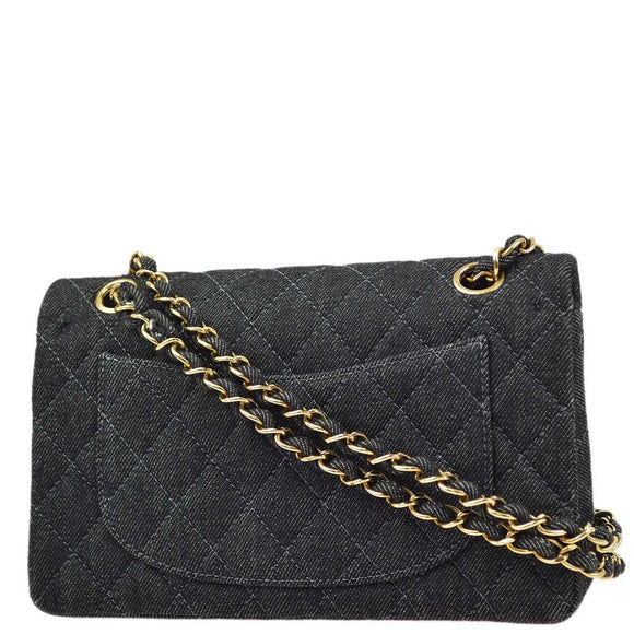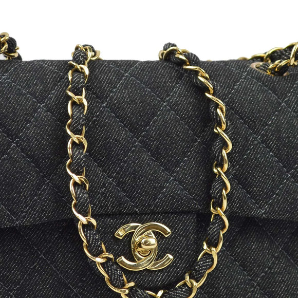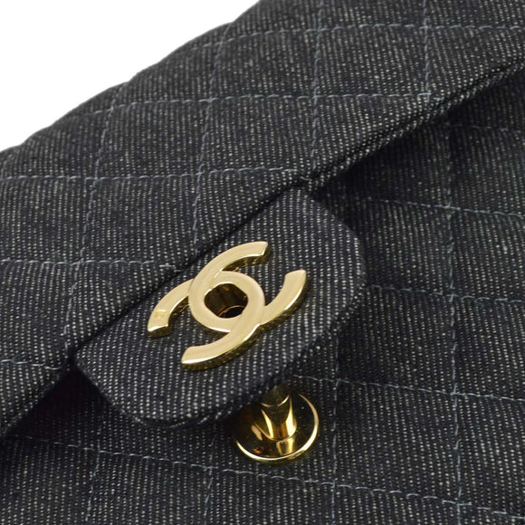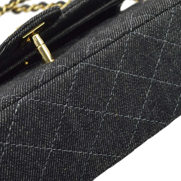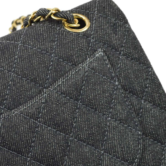 Chanel * 1997-1999 Black Denim Small Classic Double Flap Shoulder Bag