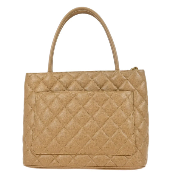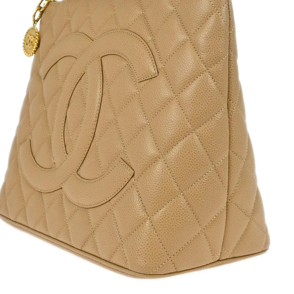 Chanel 2003-2004 Beige Caviar Medallion Tote Handbag