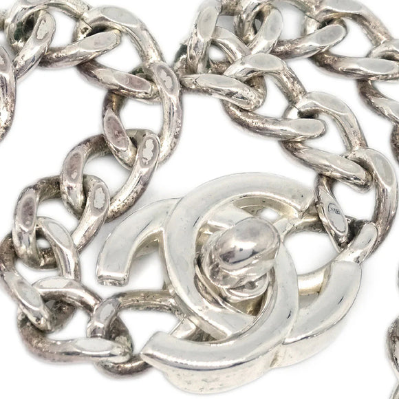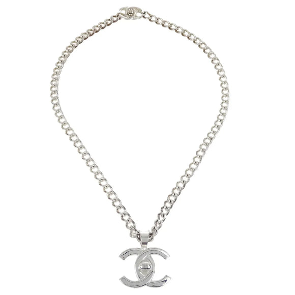 Chanel Turnlock Chain Pendant Necklace Silver 97P