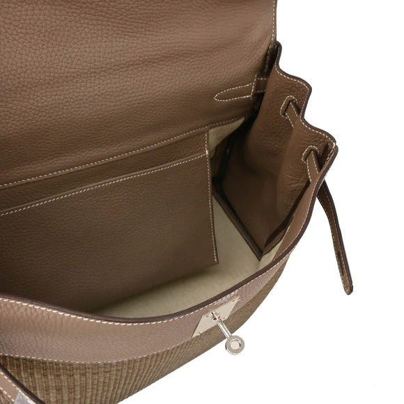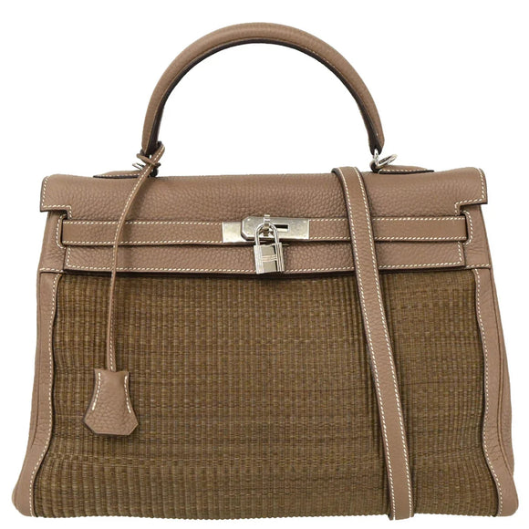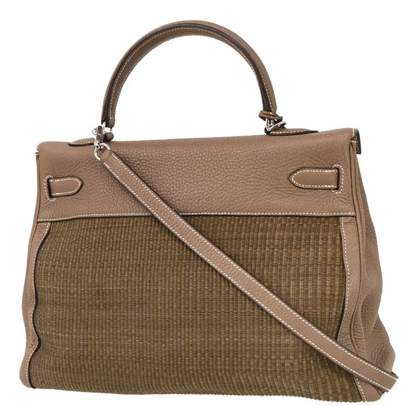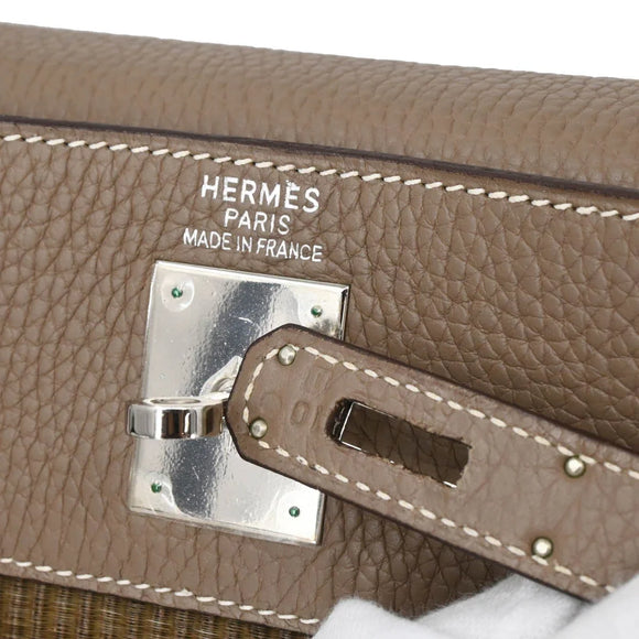 Hermes 2005 Etoupe Clemence Crinoline Kelly 35 Retourne 2way Shoulder Handbag