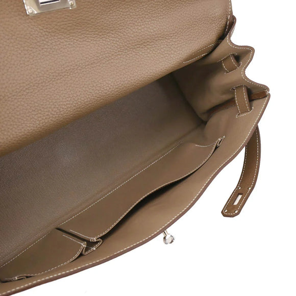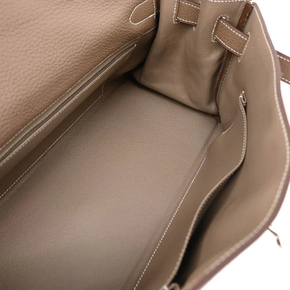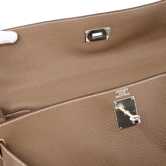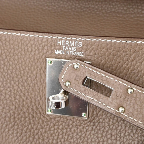Hermes 2009 Etoupe Gray Taurillon Clemence Shoulder Kelly Handbag