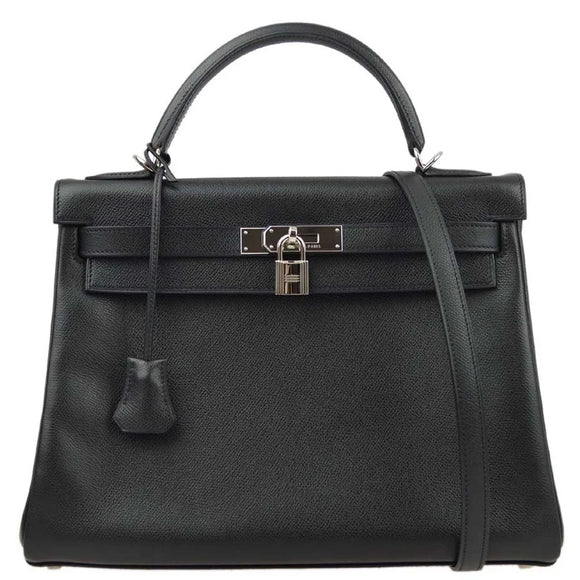 Hermes 2005 Black Epsom Kelly 32 Retourne 2way Shoulder Handbag